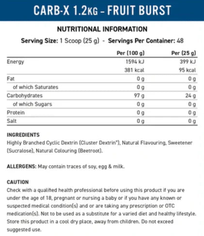 Carb-X™ Highly Branched Cyclic Dextrin carbs (Cluster Dextrin®) are highly soluble and provide a quick source of energy. Carb-X can be used alongside Applied Nutrition’s BCAA and EAA formulas. Another perfect product to take in conjunction with Carb-X is Applied Nutrition’s i-Drive™.