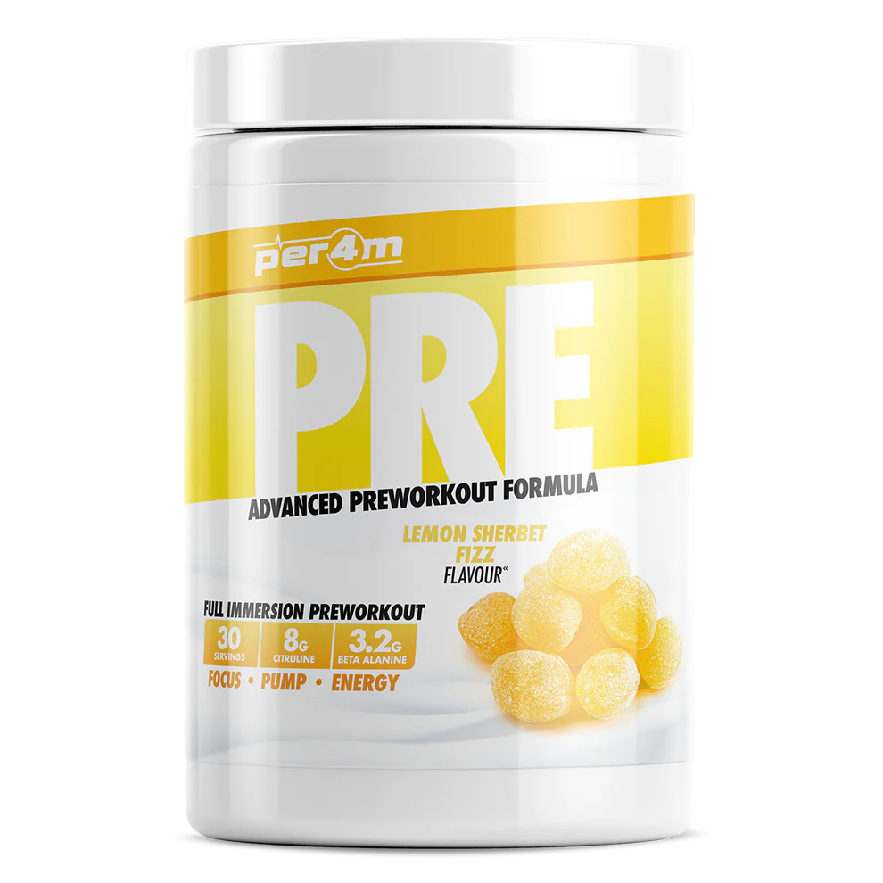 Elevate your gym sessions with Per4m Pre, the quintessential pre-workout solution for maximizing performance. Featuring a carefully selected blend of ingredients to enhance energy and sharpen mental focus, including a generous 2000mg of Taurine for superior hydration.