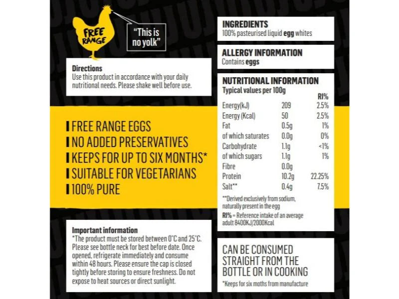This is no yolk! Uncle Jack's Liquid Egg Whites are done right. Free Range & Pure. We have already separate and removed the yolk so you are saved the hassle, the time and the wastage.